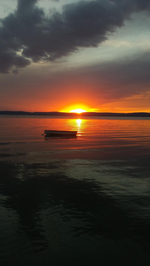 Vége a nyárnak, pihen a Balaton. Nyugodt és tiszta vizű, szinte érezni a délutáni naplementében, hogy „hálásan piheg”. A vízimadarak, kacsák, sirályok hangja messze hallatszik, és néha-néha a csendben egy-egy kócsag szárnyrebbenését is hallhatjuk. A fákról behordott levelek hullanak a partmenti vízbe, közöttük sikló úszik háborítatlan, csérek húznak el messze, hattyúcsapat száll le a közelben. Nappal talán ilyenkor legszebb kék az ég, délután gyorsabban hűl a levegő, itt az ősz: a fecskék már rég elszálltak, ritkulnak a fák levelei, lassan sárgulni kezd a nád.