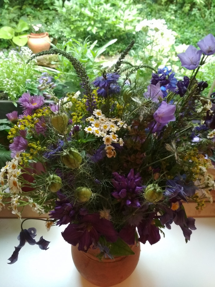 Júniusban nemcsak a réteken, mezőkön, de a kertekben is rengeteg a virág. Pünkösdre rózsaszín, bíbor színekben pompázott a kert, bazsarózsák, törökszegfűk, az utolsó íriszek illatoztak, most pedig a kék sokféle árnyalatát csodálhatjuk.