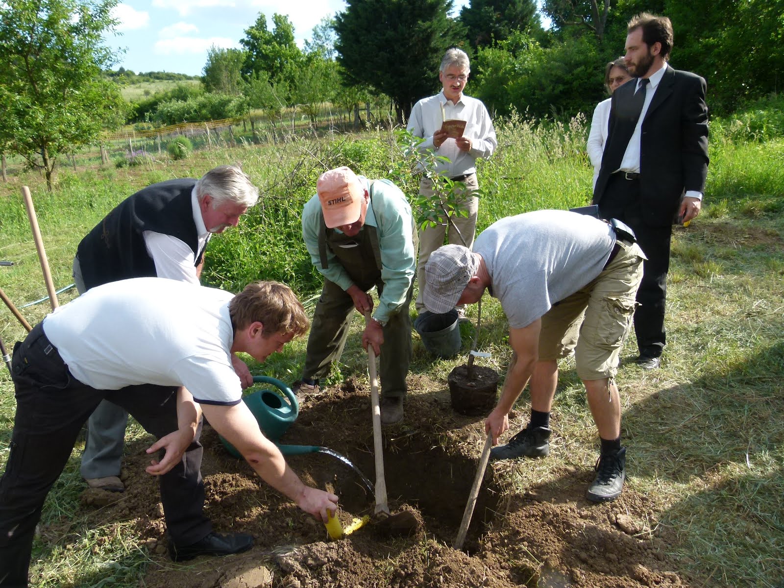 Csabdiban is hasonló sikert aratott a gyümölcsész projekt. A gyümölcsfákat a lelkes résztvevők a helyi református templom, illetve parókia kertjében ültették el, és vették körbe kerítéssel, a vadállatok pusztítását elkerülendő. Itt, az esemény előtti pénteken, illetve a 25-i megnyitó reggelén is folytak még munkálatok, amelyekből a Naphimnusz Egyesület tagjai is aktívan kivették a részüket. A kertavatásra és a közös ebédre, illetve egyéb programokra csak ezek után került sor. A finom lekvárok, sütemények, szörpök és a frissen sült házikenyér mellett, természetesen itt is jutott bőven szellemi táplálék az egybegyűlteknek. Igen elgondolkodtató volt a lelkész úr ünnepi megemlékezése és imája, Nemes Gábor és Kükedi Zsolt beszédei, illetve Török Ádám megfontolandó gondolatai. Ennél a kertnél is Sára János biztosította a szakmai hátteret, azonban más hivatalos elfoglaltsága miatt nem tudott részt venni az ünnepélyes találkozón, így Csabdiban Labanc Györgyi érdekes és gondolatébresztő szavait hallgathatták meg a jelenlévők, fenntarthatóság érdekében mindenki által megteendő lépésekről és a világ élhetőbbé tételéről.