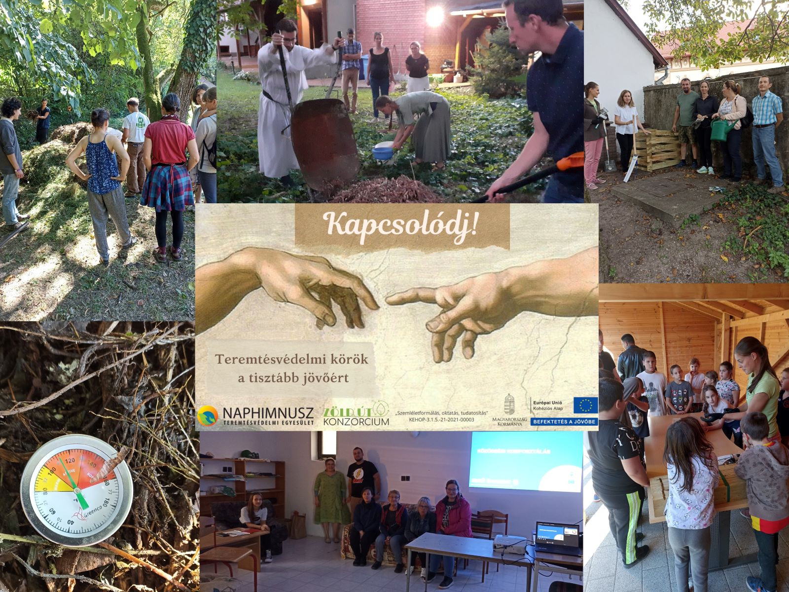 A “Szemléletformálás, oktatás, tudatosítás” elnevezésű projekt keretében a Naphimnusz Teremtésvédelmi Egyesülettel 65 helyszínen során több mint 3200 résztvevőt mozgattunk meg szemléletformáló feladatokkal, kreatív foglalkozásokkal, előadásokkal, beszélgetésekkel, képzésekkel. Több tucat közösség és tucatnyi iskola saját rendezvényeit látogattunk meg a projekt időszakában, és mi magunk is szerveztünk eseményeket, találkozókat, amelyeken szerepet kapott a tematikus szemléletformálás. Ezeken gyerekeket és a felnőtteket ismertettünk meg a hulladékmegelőzés, a komposztálás, a körforgásos gazdaság szempontjaival, megoldásaival. Igyekeztünk közben bevonni a helyi közösségek tagjait is a tevékenységek szervezésébe, hangsúlyt fektettünk a velük való megismerkedésre, a céljaik, lehetőségeik feltérképezésére. Ahol pedig igény jelentkezett erre, a közösségi cselekvések elindításában, megvalósításában is mentori segítséget ajánlottunk és adtunk.