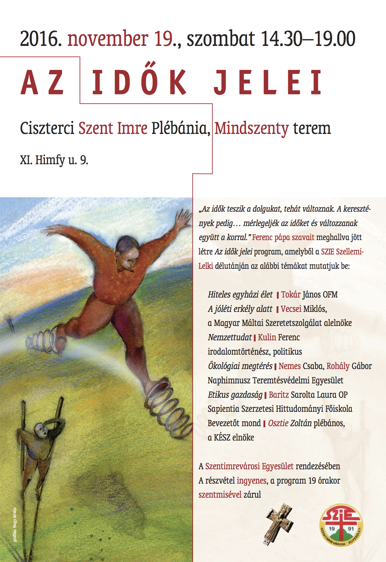Szeretettel ajánljuk honlapunk látogatóinak figyelmébe a Szentimrevárosi Egyesület programját, melyet november 19-én szombaton fél 3-tól tartanak a Ciszterci Szent Imre Plébánián. Az előadók között megtalálhatjuk a Naphimnusz Teremtésvédelmi Egyesület két tagját is, ők az Ökológiai megtérésről fognak beszélni.